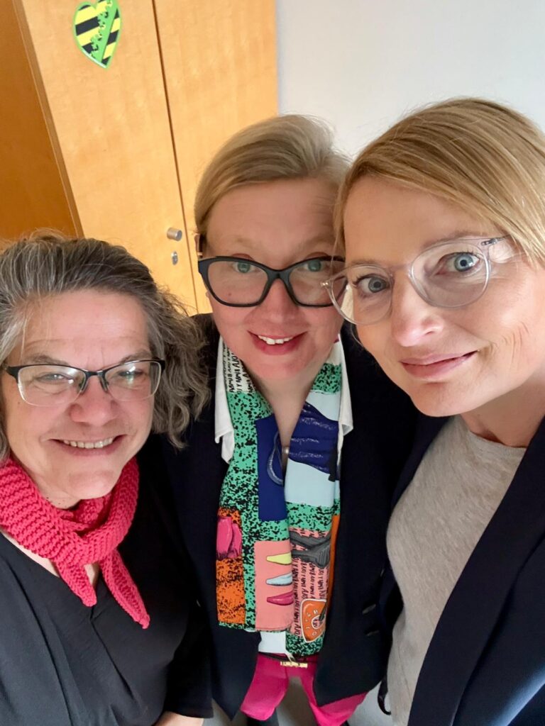 Gut, klar, ohne Firlefanz: eaf-Geschäftsführerin Eva Brackelmann hat sich in Dresden mit Sandra Gockel (MdL), Stellvertretende Fraktionsvorsitzende, Kulturpolitische Sprecherin der CDU-Fraktion, Vorsitzende des Ausschusses für Wissenschaft, Hochschule, Medien, Kultur und Tourismus des Sächsischen Landtages, und Daniela Kuge (MdL), u.a. Beauftragte für Frauen- und Gleichstellungspolitik der CDU-Fraktion, Mitglied in den Fachausschüssen Petitionsausschuss, Soziales, Gesundheit & Gesellschaftlicher Zusammenhalt.