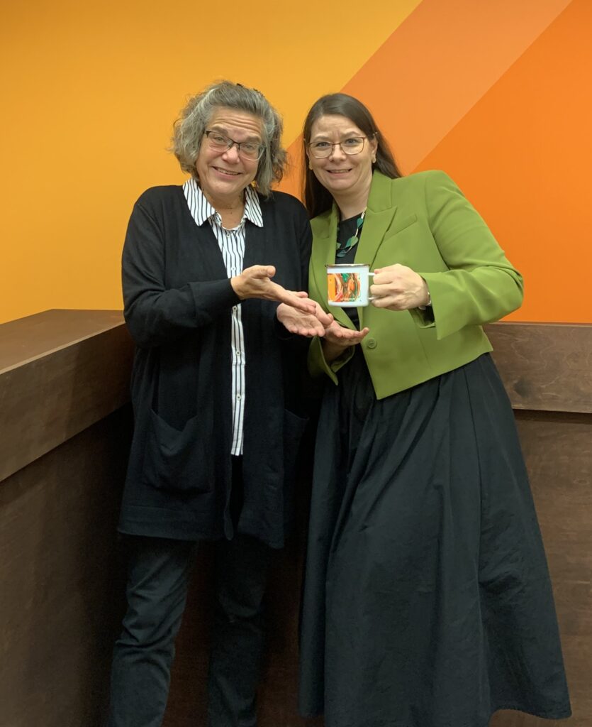 Gut, dass unsere neuen, ein bisschen psychedelisch geratenen Tassen der Herzen schon angekommen sind! So konnten wir der neuen eaf-Bundesgeschäftsführerin Nicole Trieloff gleich ein Exemplar verehren – nachdem wir sie gründlich über unsere Arbeit und Pläne durchinformiert und uns intensiv ausgetauscht haben.