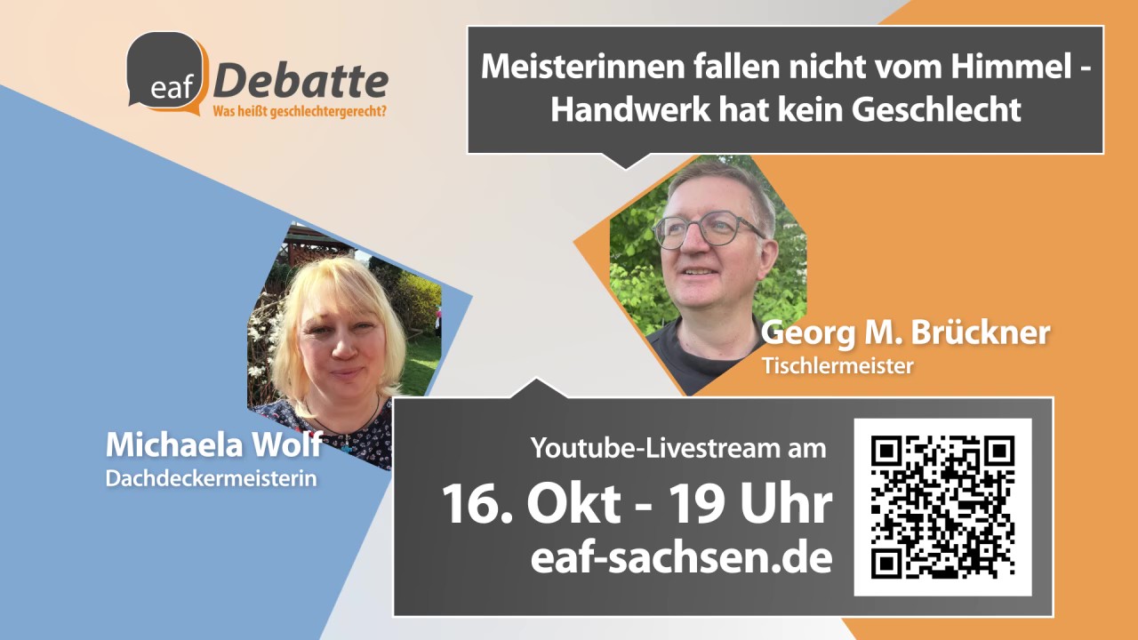 Am 16. Oktober – übermorgen! – ist es wieder soweit: In der nächsten eaf-Debatte geht es um Frauen in männertypischen Handwerksberufen. Die Pressemitteilung finden Sie: hier.